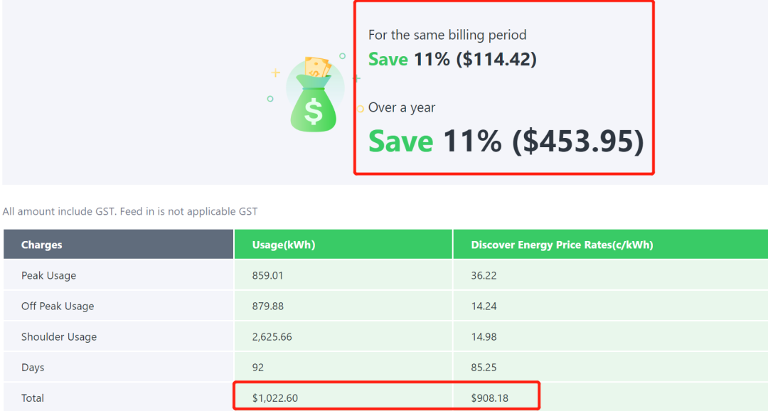 (eg.按照此下所示,经过对比,我们一年可以节省$453.95 )