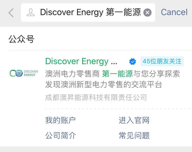 注册完成后, 微信搜索“Discove Energy第一能源” 公众号